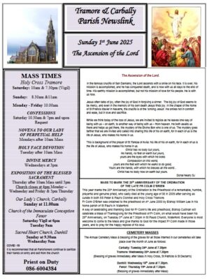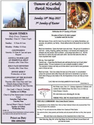 Plenty in this week's newsletter, including the Mass to mark the 25th Anniversary of the Ordination of the Late Fr. Colm O'Brien, Barack Street Band at the Vigil Mass, the Annual Diocesan Rosary Procession and a Special Mass for Cancer Victims.... READ MORE