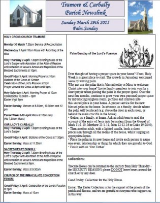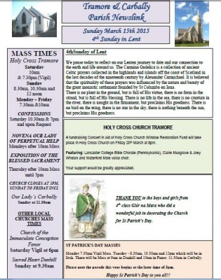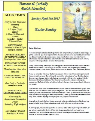 CLICK HERE to download the full Newsletter Newsletter 5th April 2015 Easter Glad-rags There are some proverbs about clothing one not very complimentary ‘cuir sioda ar ghabhar agus is gabhar í gcónaí é – put silk on a goat and it is always a goat’ only to be countered by a much nicer one:... READ MORE ... READ MORE