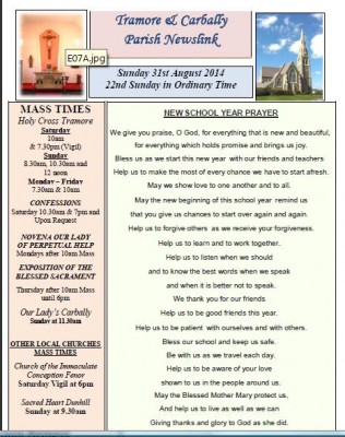 The comming week is a very exciting week for all the children in our parish who took part in the JPII Award pilot programe, with the presentation of the awards taking place on Friday next Oct 3rd.The Apostolic Nuncio to Ireland, Archbishop Charles Brown, will be in Tramore, to officially launch the Pope John Paul II Award in the diocese of Waterford and Lismore.... READ MORE