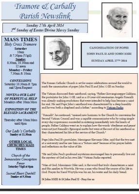 In this weeks newsletter we send our Best Wishes to Shane who will be ordained Deacon today.We also send our best wishes to the students in our parish who will sit their exams, from wedneday on for the next few weeks... READ MORE