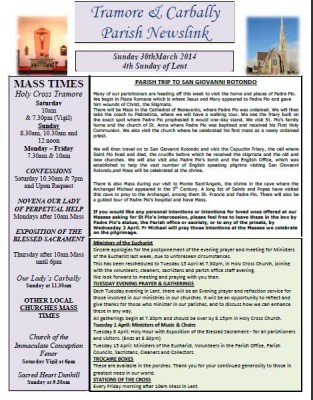Many of our parishioners are heading off this week to visit the home and places of Padre Pio.... READ MORE