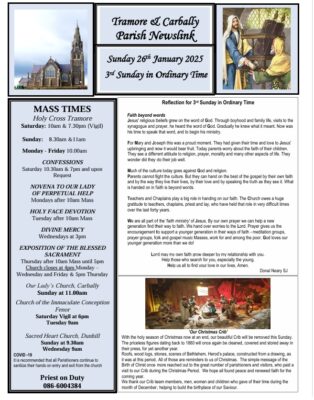 In this weeks Newsletter we feature a reflection for the third Sunday in Ordinary Time... READ MORE