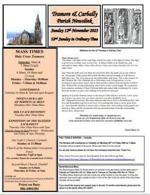 In this weeks Newsletter we feature details of events in our parish in the month of November... READ MORE