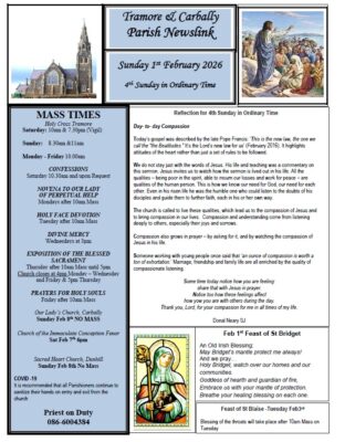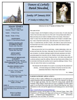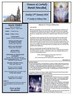 This weekend the Christmas Crib will be safely removed after the Christmas season, Mass schedule change for country parishes , Reflection for the 3rd Sunday in Ordinary Time, January Return for our Ciorcal Cómhra in Tramore,... READ MORE