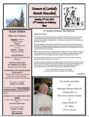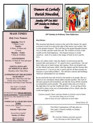 In this weeks Newsletter we feature a reflection by Donal Neary SJ for the 27th Sunday in Ordinary Time... READ MORE
