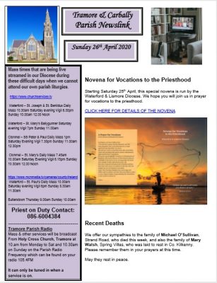 Novena for Vocations to the Priesthood Starting Saturday 25th April, this special novena is run by the Waterford & Lismore Diocese. We hope you will join us in prayer for vocations to the priesthood. ... READ MORE