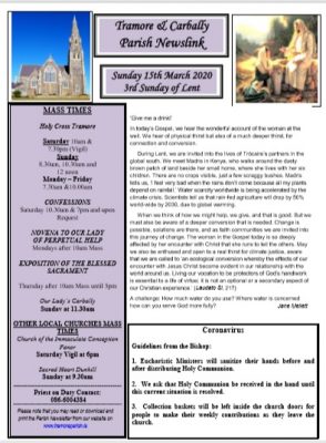In this weeks Newsletter please see guidelines from the bishop re Coronavirus... READ MORE