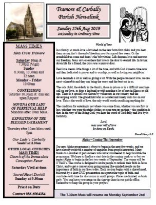 Alpha: Coming Soon to Tramore! Join us this autumn as we begin a new parish programme to explore our faith, to share testimonies and to experience fellowship as a community of believers in Jesus Christ.... READ MORE