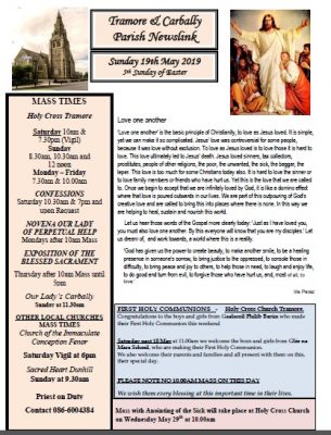 Mass with Anointing of the Sick on Wednesday May 29th at 10.00am. Congratulations to the children from Glór Na Mara School who made their First Holy Communion this weekend.... READ MORE