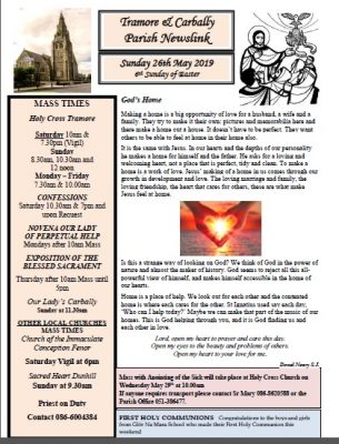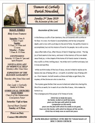 Sunday 2nd June 2019 is The Feast of The Ascension of the Lord. BANK HOLIDAY MONDAY JUNE 3RD NO 7.30AM MASS AT HOLY CROSS CHURCH.... READ MORE