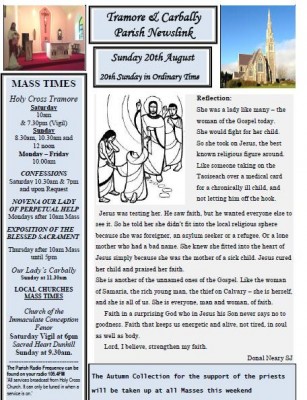 She was a lady like many – the woman of the Gospel today. She would fight for her child. So she took on Jesus, the best known religious figure around. Like someone taking on the Taoiseach over a medical card for a chronically ill child, and not letting him off the hook.... READ MORE