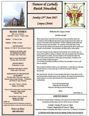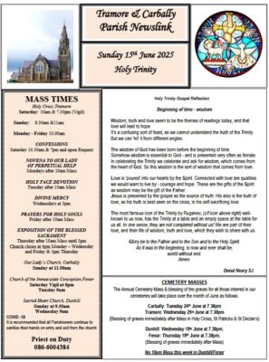 In this weeks newsletter we feature a Reflection on "Wisdom and the Holy Trinity", a Craft Fair, with the Sisters of the Morning Star, Friary Lane and an opporunity to support 40 Hours of Eucharistic Adoration in St. Paul’s Church, Lisduggan... READ MORE