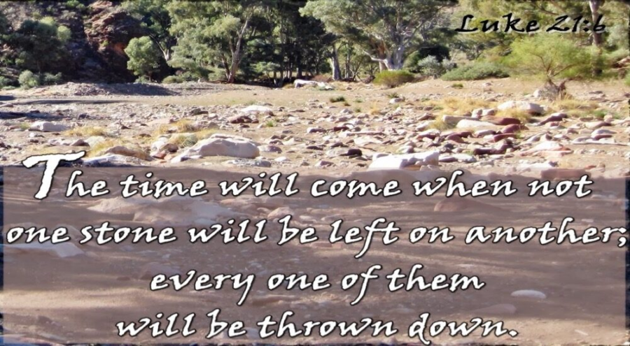 When some were talking about the Temple, remarking how it was adorned with fine stonework and votive offerings, Jesus said, ‘All these things you are staring at now – the time will come when not a single stone will be left on another: everything will be destroyed.’ And they put to him this question: ‘Master,’ they said ‘when will this happen, then, and what sign will there be that this is about to take place?’