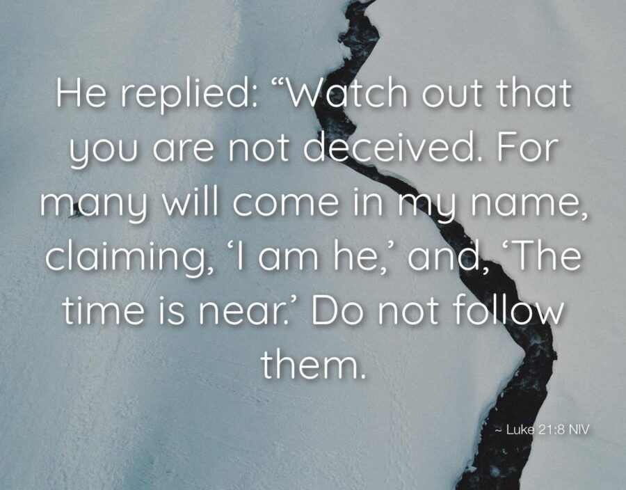 ‘Take care not to be deceived,’ he said ‘because many will come using my name and saying, “I am he” and, “The time is near at hand.” Refuse to join them. And when you hear of wars and revolutions, do not be frightened, for this is something that must happen but the end is not so soon.’ Then he said to them, ‘Nation will fight against nation, and kingdom against kingdom. There will be great earthquakes and plagues and famines here and there; there will be fearful sights and great signs from heaven.