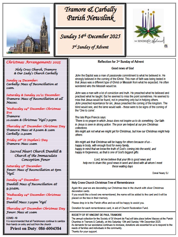 Newsletter 14th December 2025 – 3rd Sunday of Advent