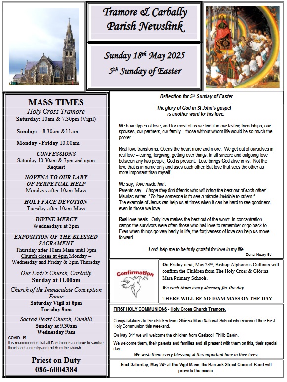 - Holy Cross & Glór na Mara Primary Schools Confirmation on Friday next, May 23rd