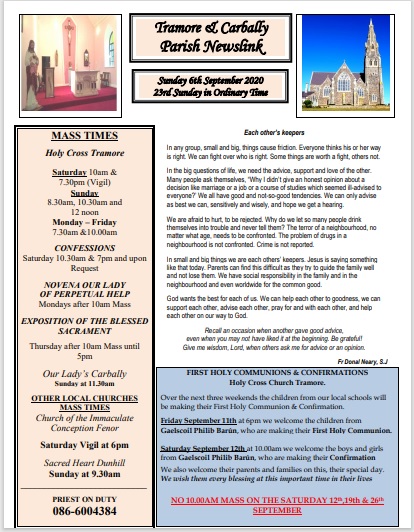 Rosary will be live streamed from St. Paul’s Church, Lisduggan Waterford on Tuesday 8th of September 6.30pm.